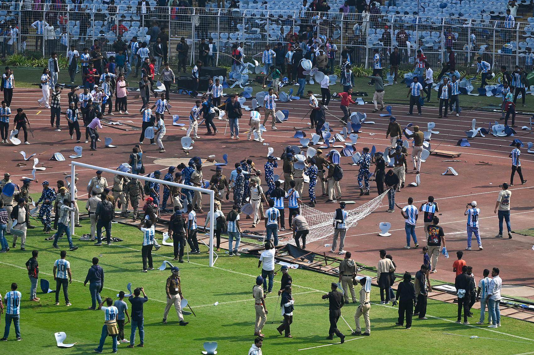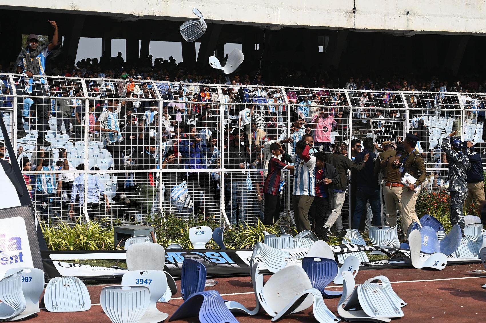 12月13日,梅西开启印度行,同行的还有两位好友苏亚雷斯和德保罗。梅西来到首站加尔各答的盐湖体育场,与现场的球员及球迷互动。由于组织混乱,梅西在现场只停留了10分钟左右就被组织方带离,并没有与球迷进行近距离的接触,这让印度球迷很愤怒。梅西离场后,愤怒的球迷冲场进行破坏。这起骚乱结束后,印度警方发布通报,活动组织者已被警方拘留,球迷要求主办方退还门票费用。